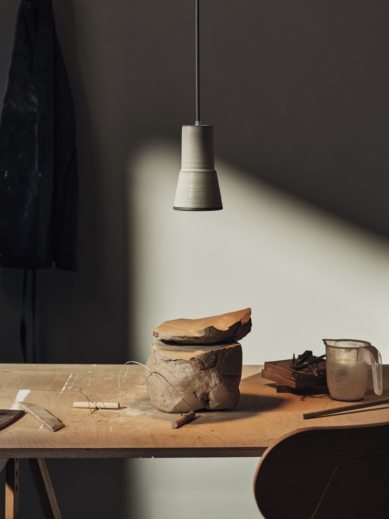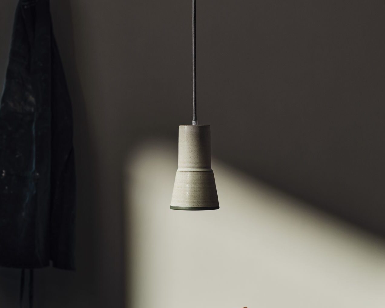 Designed and developed in collaboration with potter Justin Page, the Kamin light is a small, wheel thrown stoneware pendant light.